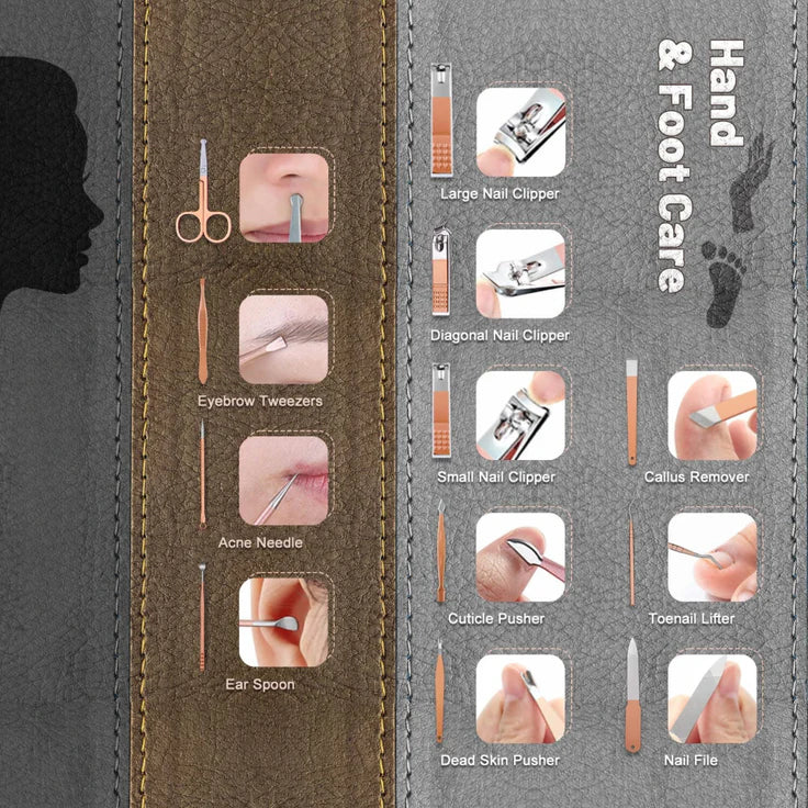 Take your nail care to the next level with this premium 12 PCS Manicure Pedicure Kit. Designed for style, comfort, and precision, this complete manicure set for girls is the ultimate solution for hand, foot, and nail grooming. Whether you need a pedicure kit for perfectly shaped toenails or a manicure pedicure kit for salon-quality results at home, this stylish set is your all-in-one answer.
